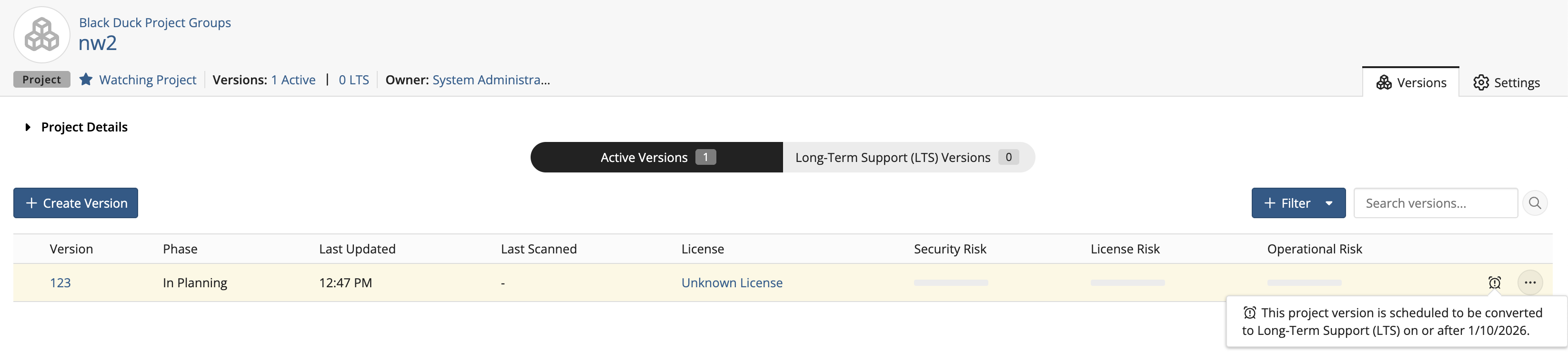 - Automatic Progression to LTS: Users can configure project versions to automatically transition to Long-Term Support (LTS) status, ensuring ongoing maintenance and security.